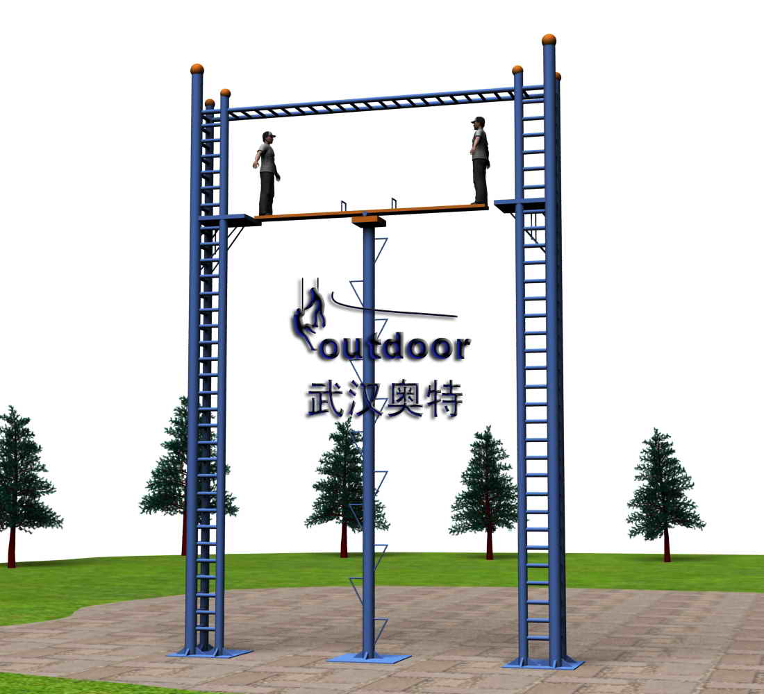 拓展器材產品介紹:在9米高空有一座需要雙人配合穿越的天平橋板,想嘗試嗎?